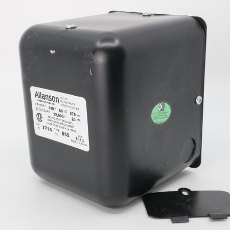 Allanson Transformers 120Vac Supply Voltage, 12,000Vac Secondary Voltage, Mid Point Ground, Industrial Transformer with Rajah Connector HV Terminal, Internal Junction Box, and 1/4-20 x 1″ Mounting Studs (Power Flame Burners)