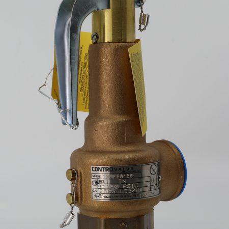 APOLLO 1″ X 1 1/4″ SAFETY VALVE SET AT 150 P.S.I. SECT. I STEAM CAPACITY: 2585 LBS/HR.