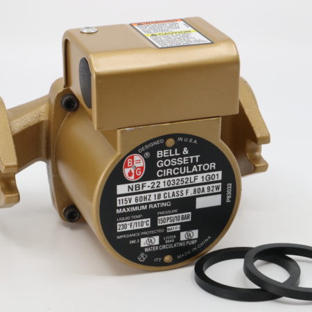 Bell & Gossett 115Vac, Single Phase, 2940 RPM, .80 Full Load Amps, 92 Watts, Single Speed, Lead Free Bronze Wet Rotor Circulator used with 3/4″, 1″, 1 1/4″, or 1 1/2″ Flanges (Model NBF-22)
