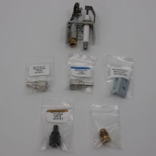 Honeywell Flame Rectifier Gas Pilots, For Intermittent or Interrupted Ignition, 45 Degree Left Hand Style Port and Burner Tip, 0.025″ Diameter Orifice, Natural Gas, 1/4″ Compression Coupling Gas Fitting, Includes Flame Electrode and Ignition Electrode
