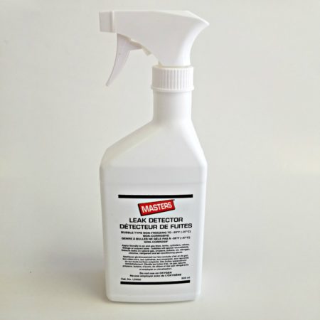 MASTERS® LEAK DETECTOR quickly locates pin hole leaks even at low pressures. It is a clear, non-freezing (to –35°F / -37°C) liquid. It is also available in pink for easy spotting. It can be used wherever areas are to be tested, or leaks suspected, in: