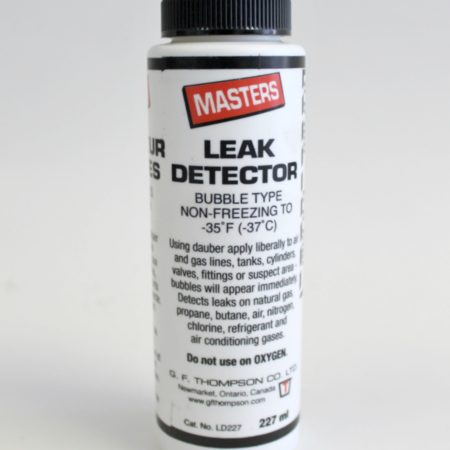 MASTERS® LEAK DETECTOR quickly locates pin hole leaks even at low pressures. It is a clear, non-freezing (to –35°F / -37°C) liquid. It is also available in pink for easy spotting. It can be used wherever areas are to be tested, or leaks suspected, in: