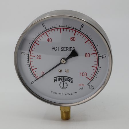 WINTERS 4 1/2″ DIAL CONTRACTOR PRESSURE GAUGE 1/4″ NPT BOTTOM CONNECTION RANGE: 0 – 15 P.S.I.