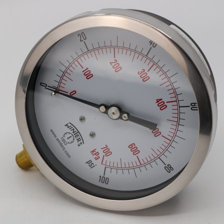 WINTERS 4 1/2″ DIAL PRESSURE GAUGE 1/4″ BOTTOM CONNECTION RANGE: 0 -100 P.S.I.